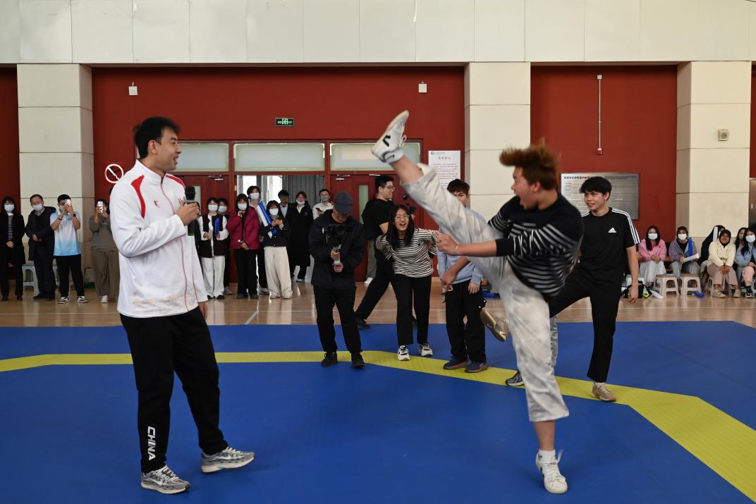 11月27日,由中国跆拳道协会主办、北京市跆拳道协会与我院联合承办的“2025年冠军进校园暨全民健身志愿服务系列活动(北京站)”在我院成功举办。北京华文学院孔雪梅副院长,北京市跆拳道协会王立刚秘书长,世界冠军宋兆祥、詹天瑞、李晨等北京队运动员,以及北京师范大学师生代表与我院300多名师生共同参与了此次活动。