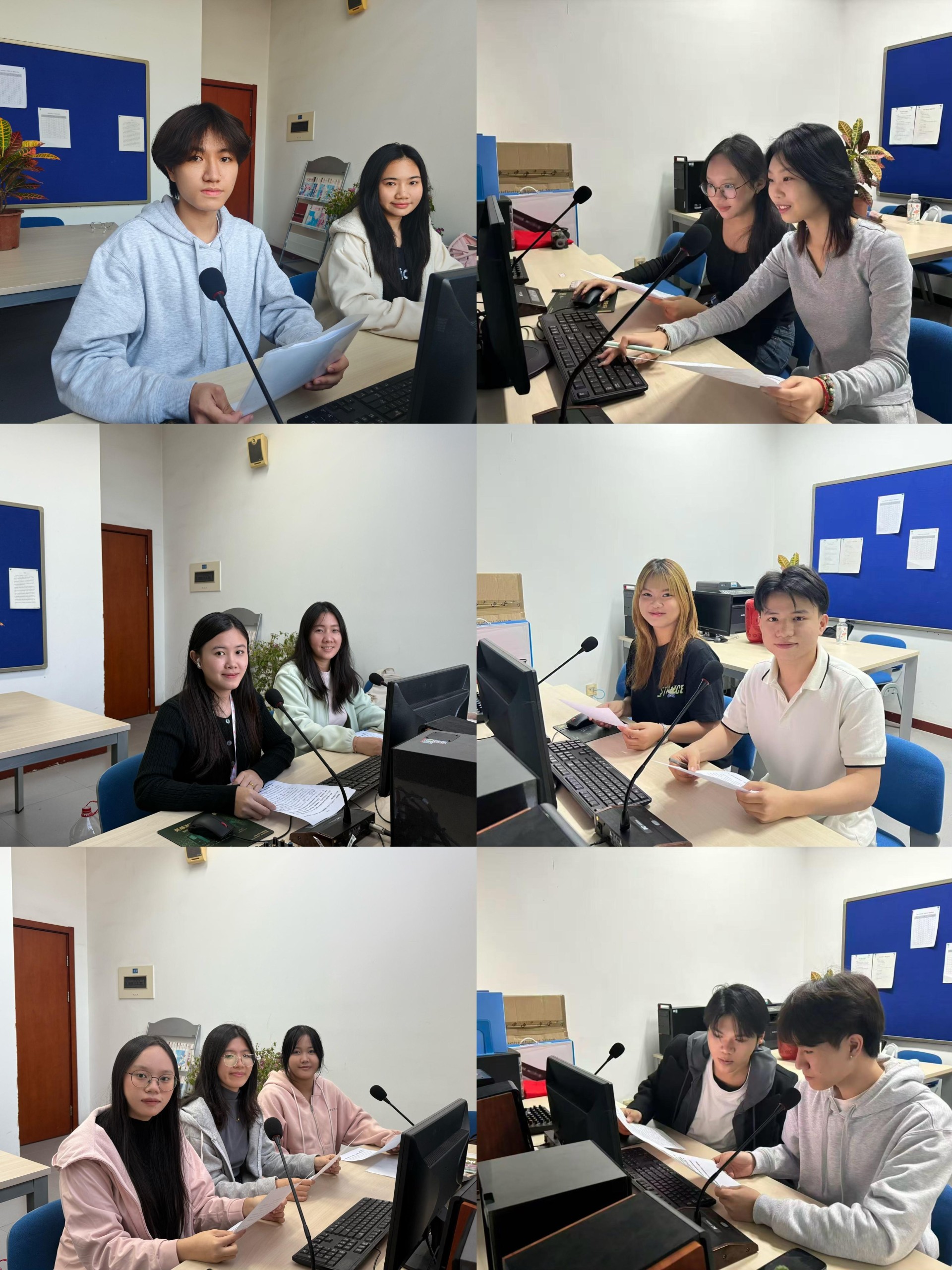 作为学院重要的文化传播窗口与语言实践基地,广播站依托华文教育特色与国际化学生背景,秉持“服务学子、传播文化、情牵五洲”的工作原则,通过普通话表达、文稿理解、协作意识等综合评估,选拔了一批具有热情与潜力的学生加入广播队伍。