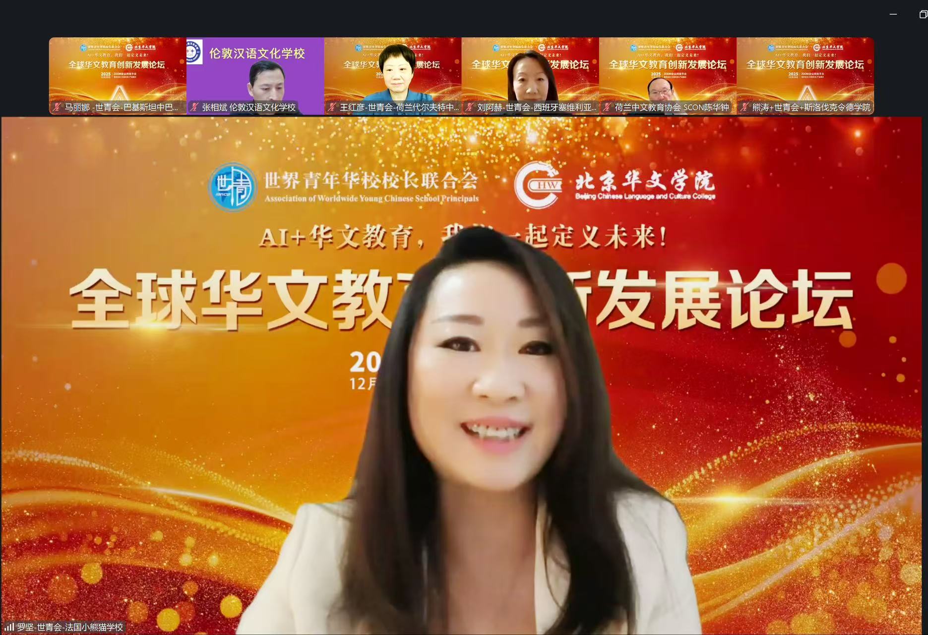 2025年12月29日,由世界青年华校校长联合会和北京华文学院联合举办的“2025年全球华文教育创新发展论坛”圆满落幕。论坛以“人工智能与华文教育融合创新”为主题,通过ZOOM会议平台连线全球,吸引了来自世界五大洲、数十个国家和地区的华校校长、一线教师、教育机构代表及专家学者共同探讨科技时代华文教育的发展路径与未来前景。