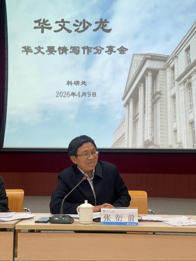 2026年4月9日,我院科研处与院办公室联合举办“华文沙龙”第十六讲。白鸽、白娟、徐鹏飞、张爱、张冬冬5位老师进行经验分享,畅谈信息报送的体会认识和主要经验,以进一步提高我院信息报送、服务国家发展的能力水平。我院张衍前书记、王志民院长出席会议。